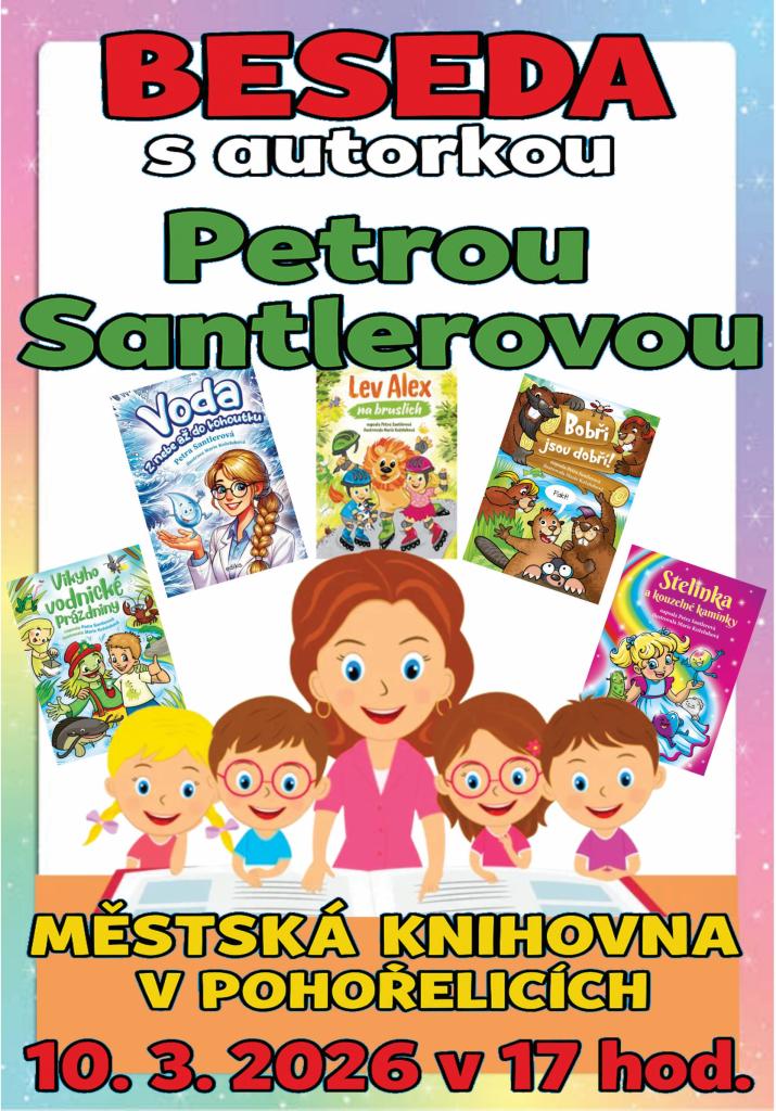 Zveme vás na besedu s autorkou dětských knih Petrou Santlerovou.