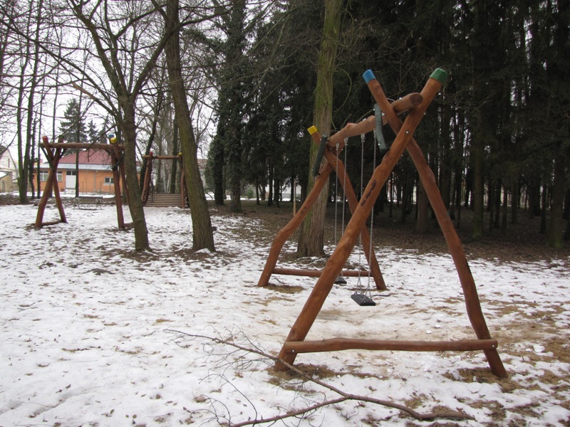 Rozhodli jsme se tedy oslovit několik sponzorů, zda by podpořili náš nový projekt „Kdo si hraje, nezlobí“. Projekt některé sponzory zaujal a podařilo se nám tak získat chybějící finanční prostředky. Finanční prostředky z rozpočtu města a od sponzorů nám umožnily zakoupit dětské prvky zahrnující lanovku „Poletuchu“ a dvojhoupačku. Oba prvky jsou určeny pro děti ve věku 6 – 15 let. Prvky jsou voleny z dřevěného beztřískového materiálu, tak aby nenarušovaly celkový vzhled parku a staly se jeho přirozenou součástí. Dále nabízejí bezpečnost, která děti neomezuje ve hře. Dětské hřiště by mělo sloužit jako cíl procházek maminek s dětmi. U školní mládeže by mělo zároveň působit jako prostředek prevence kriminality mládeže a přispět k aktivnímu pozitivnímu trávení volného času. Touto cestou bych chtěla poděkovat především pracovníkům technických služeb města, kteří se nejvíce podíleli při samotné realizaci a jimž také patří největší zásluha. Dále děkuji sponzorům, bez jejichž podpory by nebylo možné hřiště vybudovat: Město Pohořelice, RWE The energy to lead a Kooperativa Vienna Insurance Group. Přejeme mnoho zábavy a věříme, že se občanům, zejména dětem, bude naše nové dětské hřiště líbit.