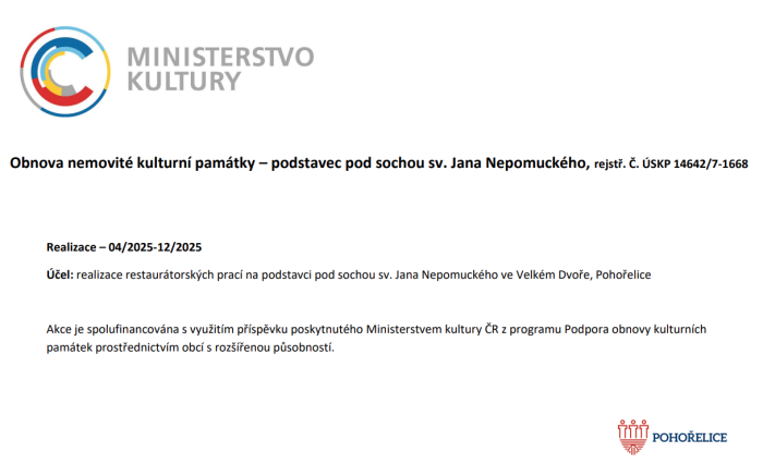 Obnova nemovité kulturní památky – podstavec pod sochou sv. Jana Nepomuckého