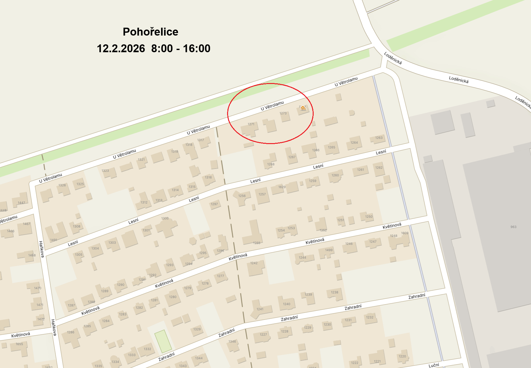 Vypnutá oblast: Pohořelice - U Větrolamu č.p. 1271 až č.p. 1274
